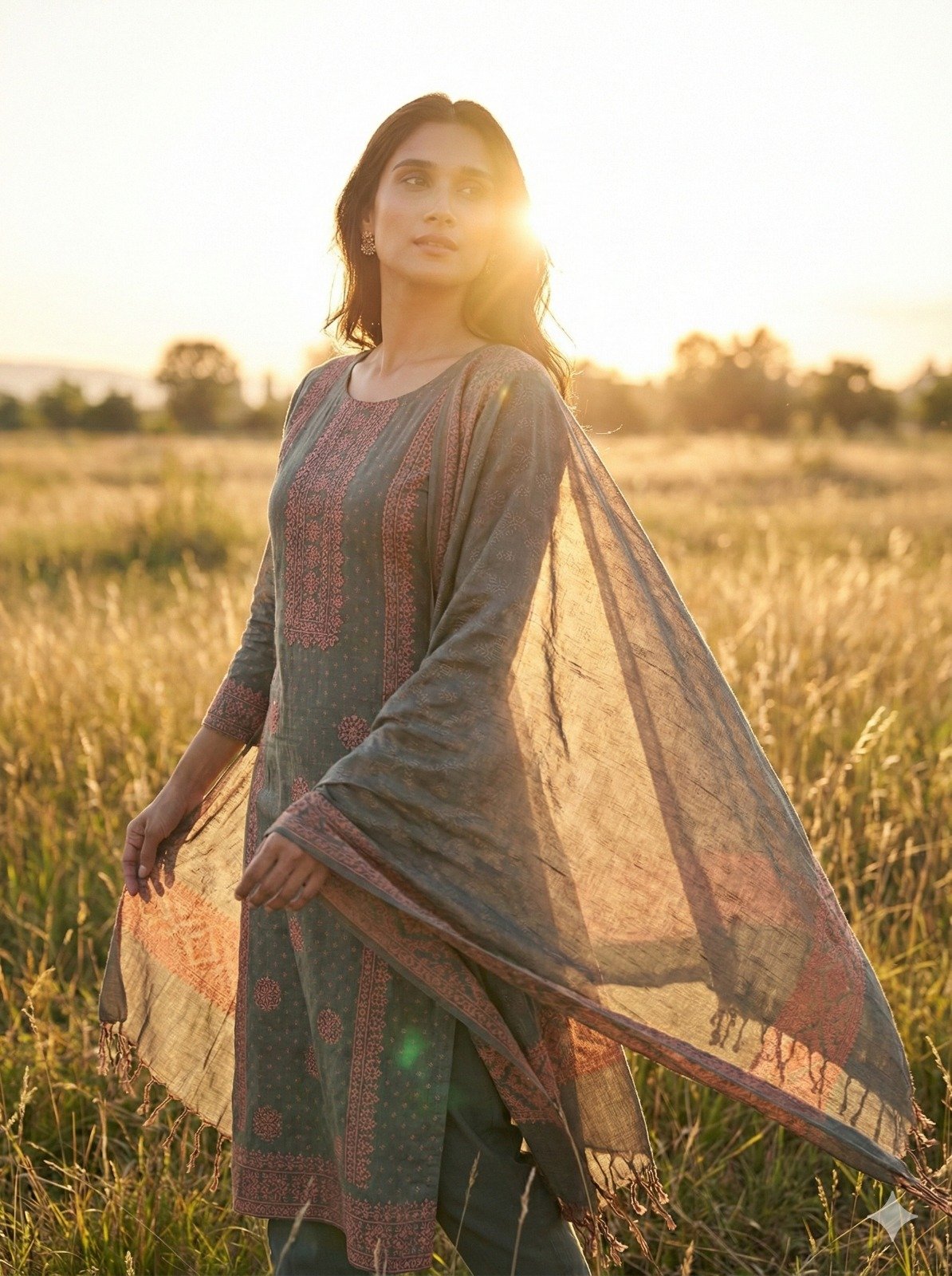 Hand Made Embroided Shiffon Unstiched 3Pcs